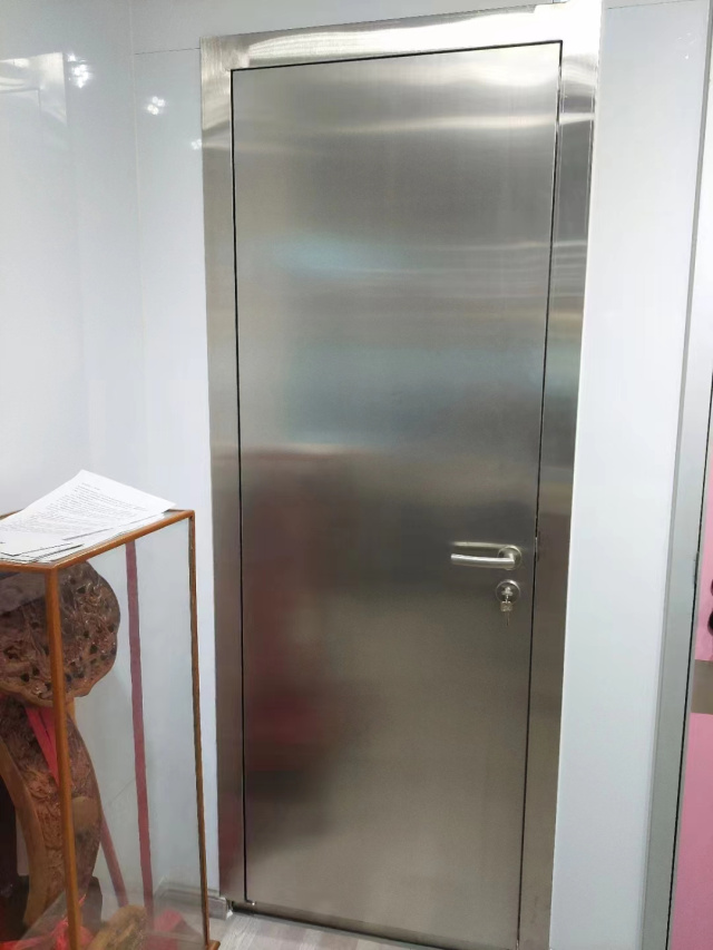 6煙臺加速器防護(hù)鉛門,外飾面采用304不銹鋼,既使防護(hù)門外飾美觀,又增加了防護(hù)門的防撞性能和機(jī)械強(qiáng)度。